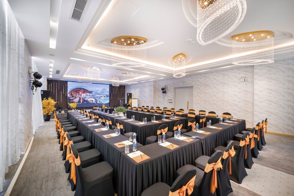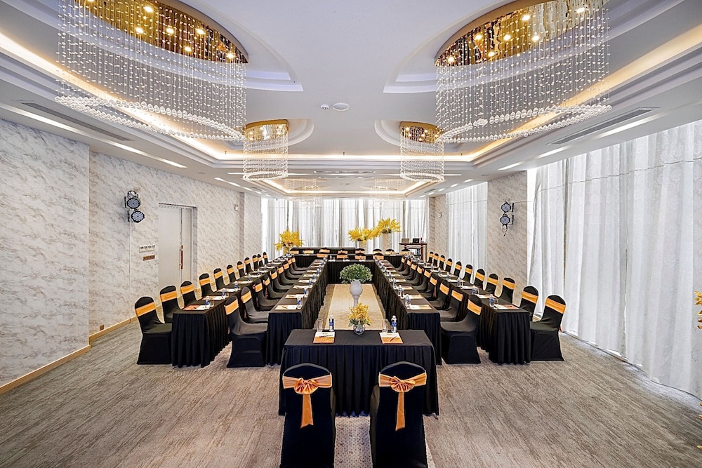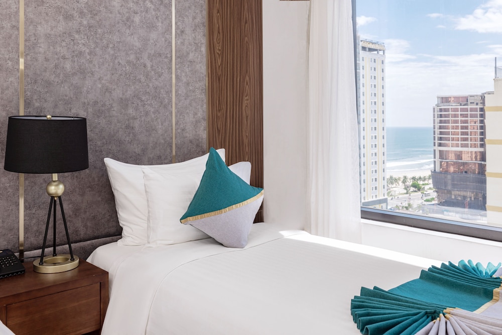 The hotel features two restaurants serving Asian and continental cuisine, a bar/lounge, and a poolside bar. Guests can enjoy an outdoor pool, a full-service spa with massages and body treatments, a sauna, and a fitness center. Additional amenities include concierge services, a hair salon, a business center, complimentary newspapers in the lobby, dry cleaning/laundry services, and 24-hour room service. The hotel also offers two meeting rooms and event facilities with conference space. Airport shuttle service is available for a surcharge. My Khe Beach is steps away.
